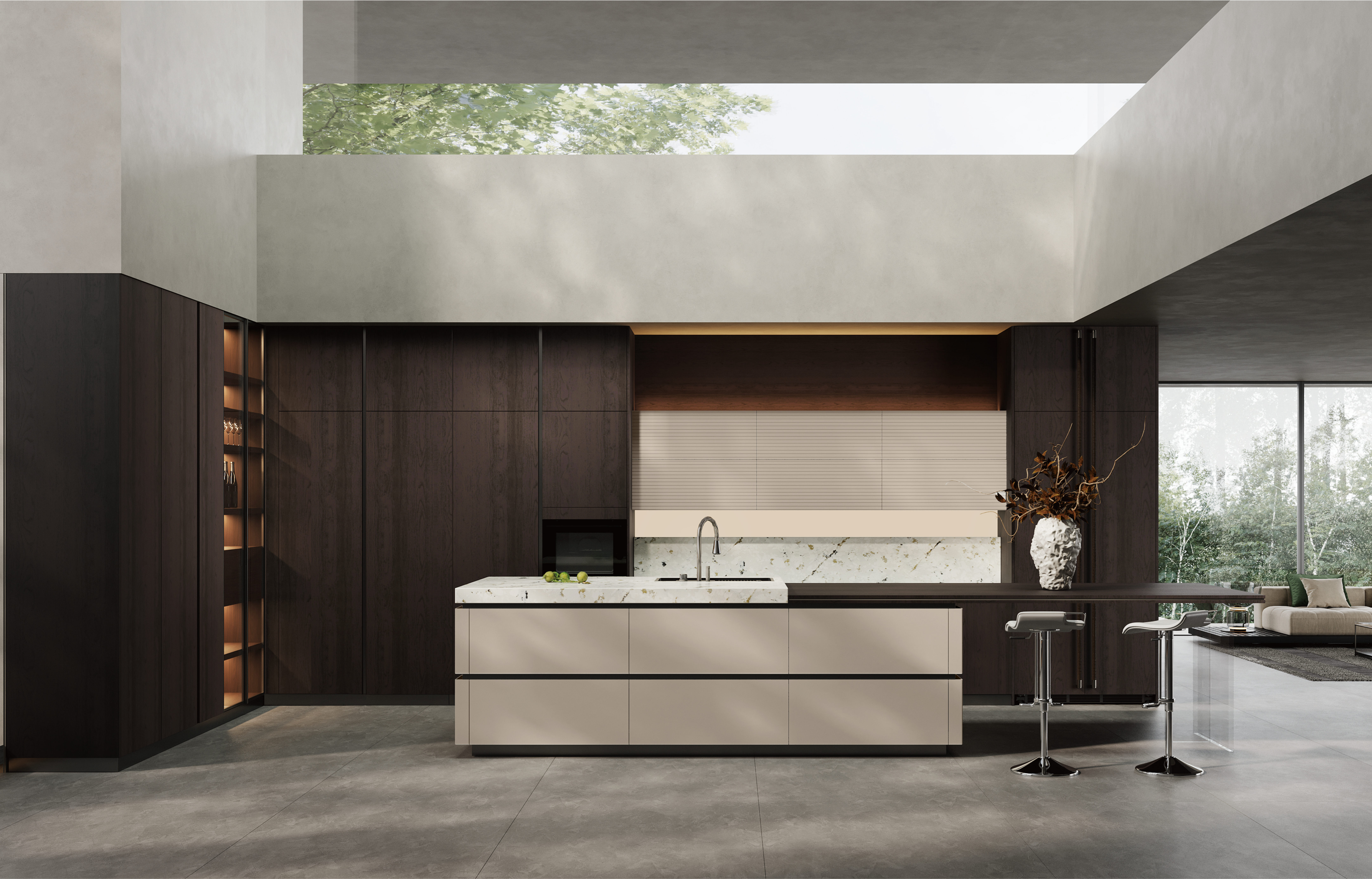 通过鼎博厨柜量体裁柜,定制出适合主厨下厨的烹饪区和洗涤区的舒适高度。